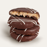 Base de arroz inflado y chocolate de leche, caramelo y cacahuate, cubierto de chocolate semi amargo 58%, con trozos de cacahuate.