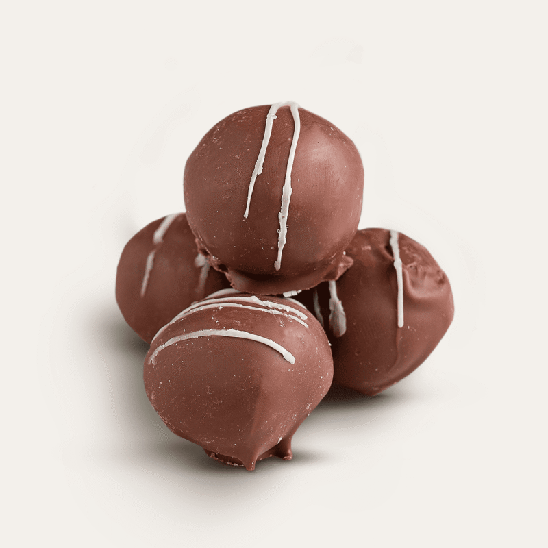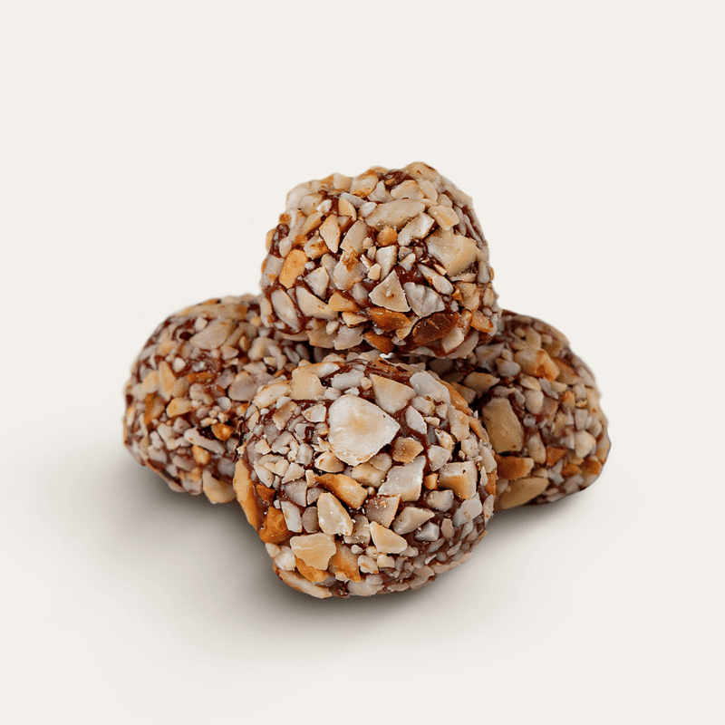 Trufa de chocolate de leche cubierta con avellana tostada.